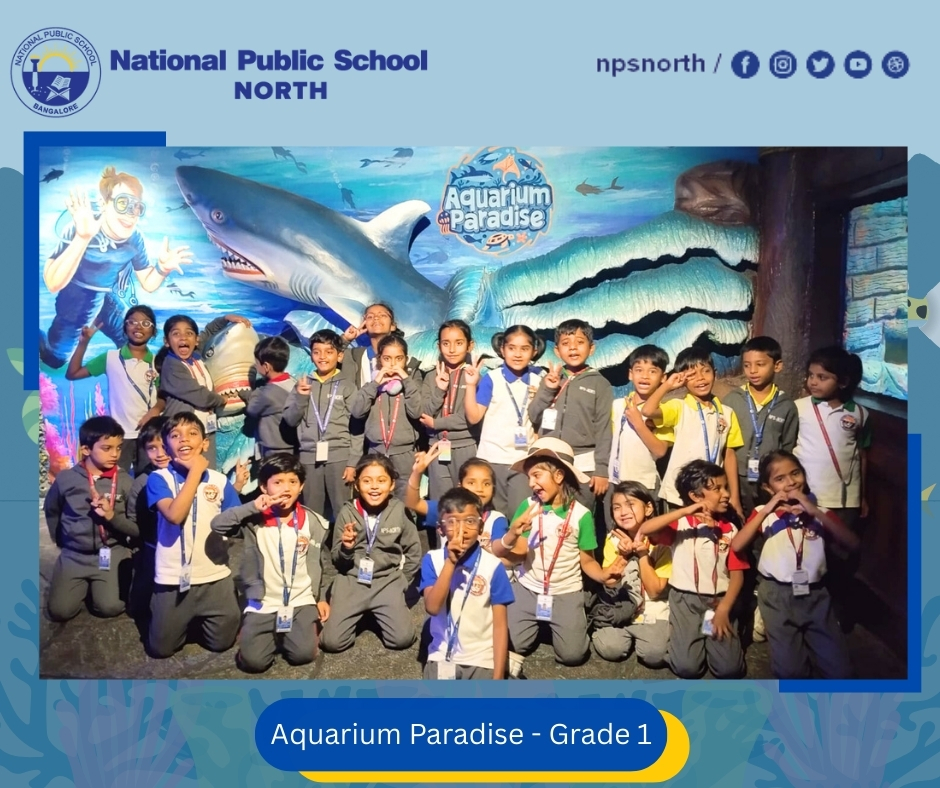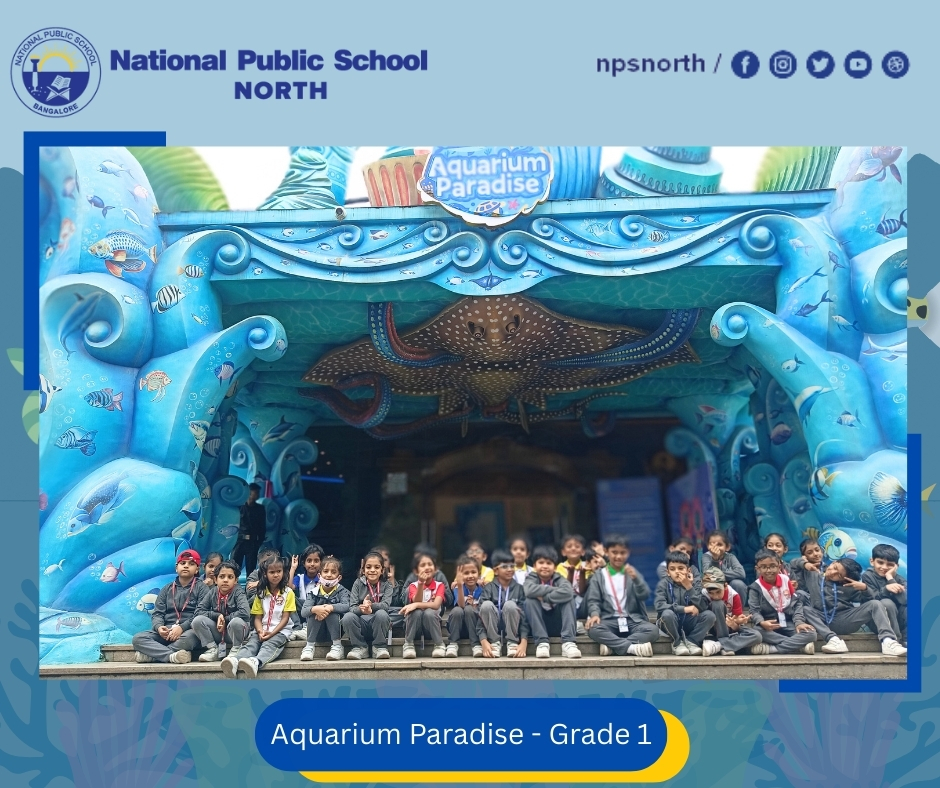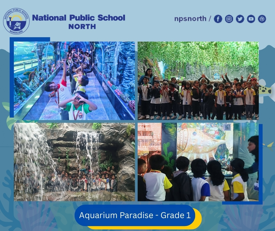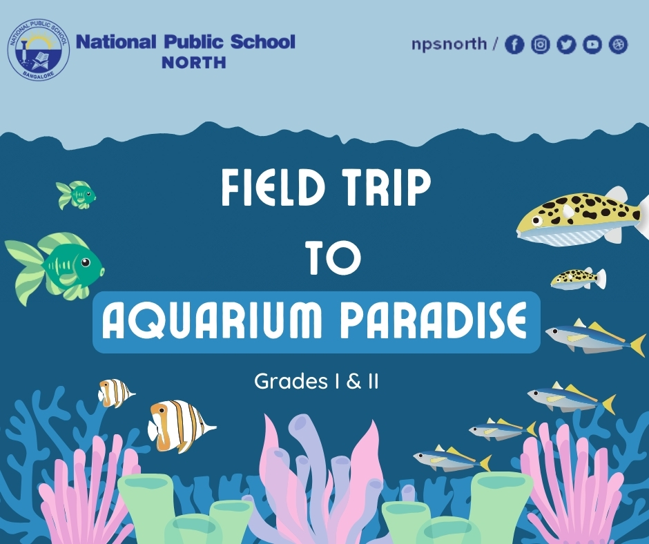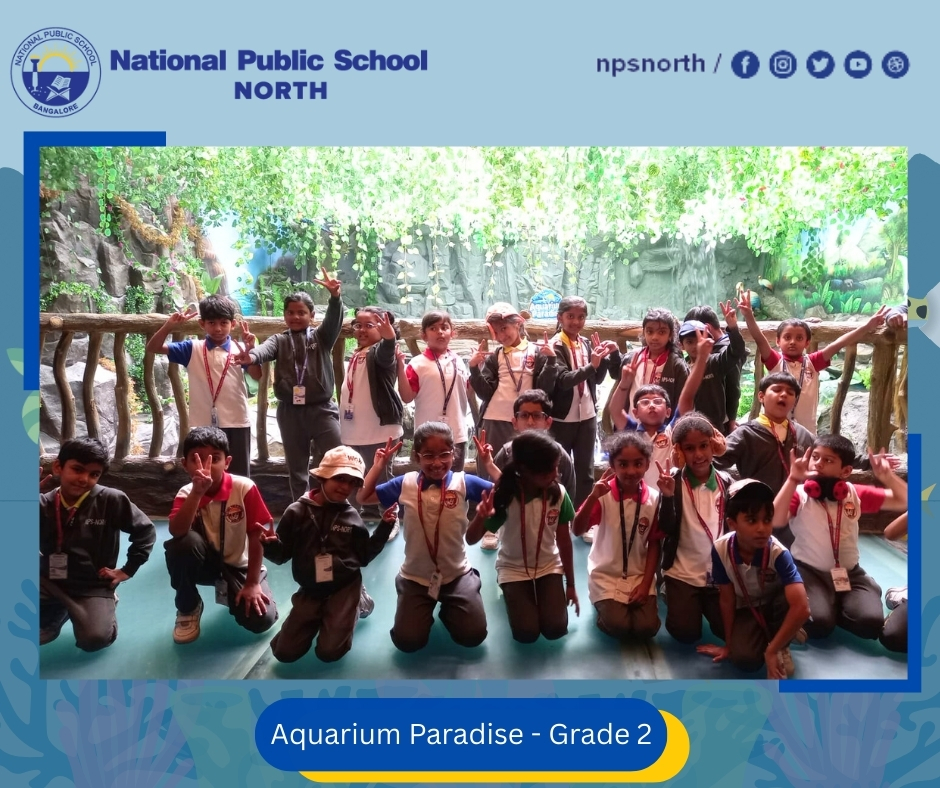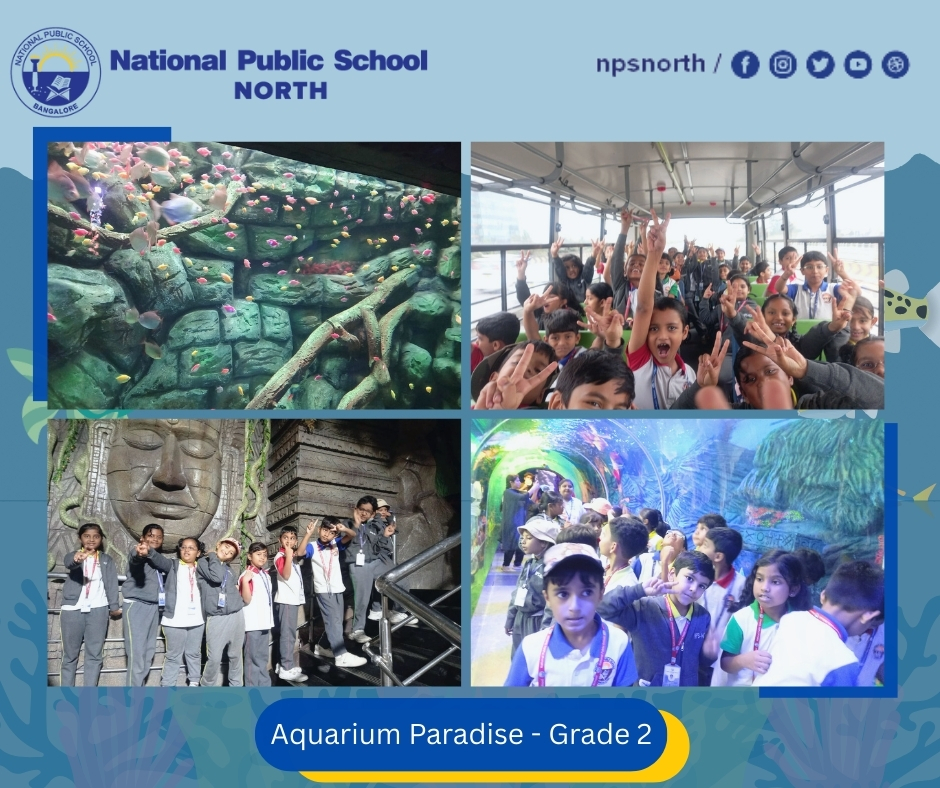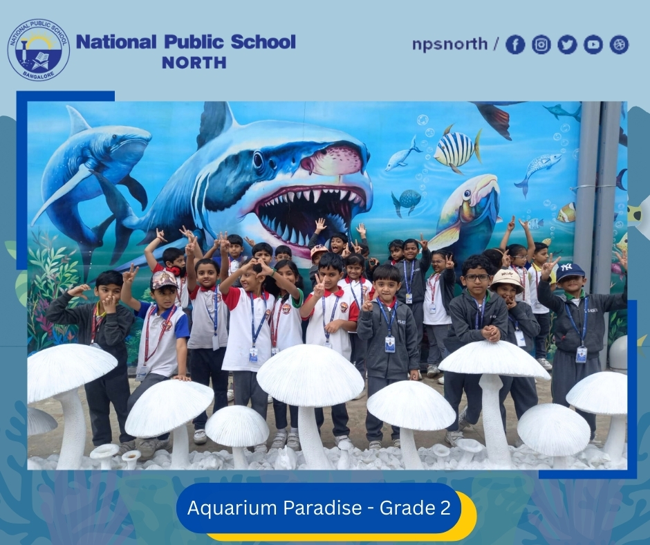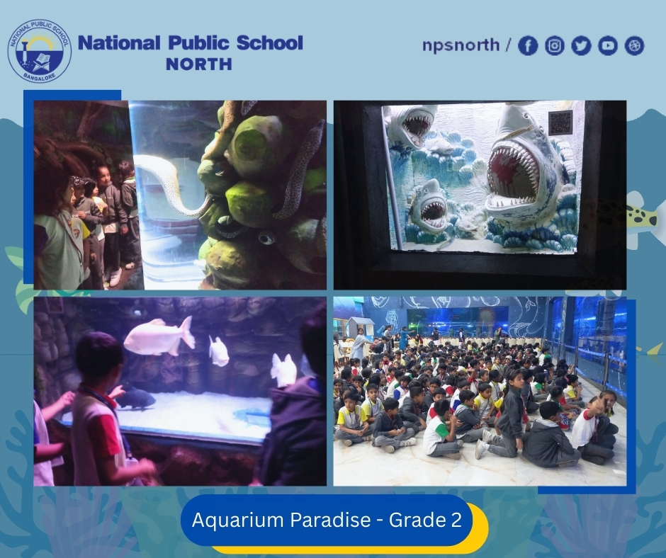 Grade I and II students of NPS NORTH visited Aquarium Paradise to learn about aquatic life. The trip aimed to foster curiosity and provide hands-on experiences related to their Science curriculum on living things. Students were expected to identify marine animals, describe fish characteristics, and connect observations to their studies. The highlight of the trip was a live Mermaid Show, which illustrated differences between humans and fish in breathing.