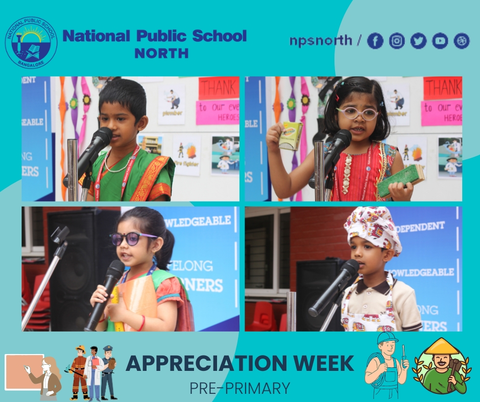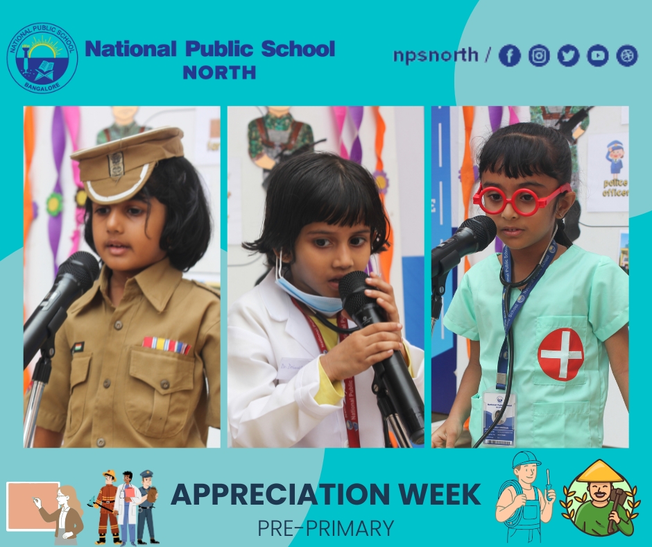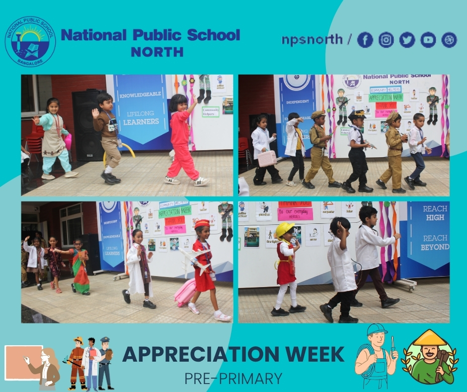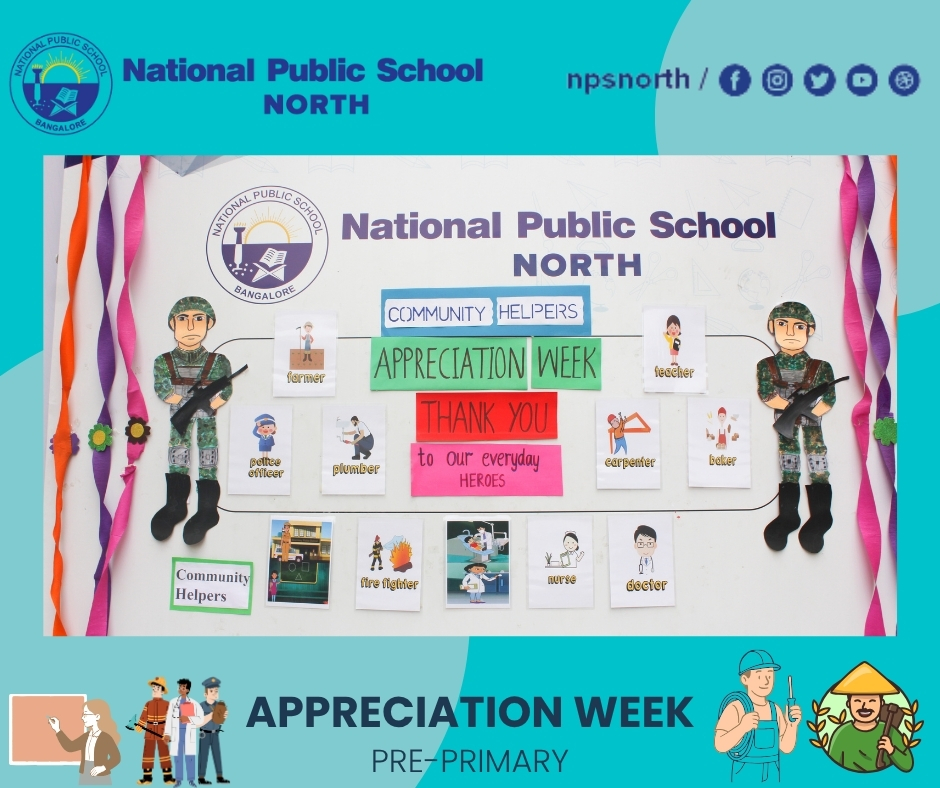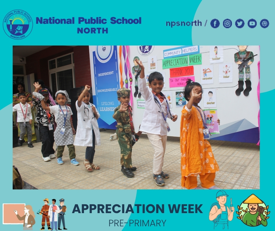 When we learn to be thankful for others, we understand the true meaning of togetherness. The Pre-Primary students at National Public School, NORTH celebrated Appreciation Week from 3rd to 7th November, honouring the community helpers who make our lives safe and comfortable. The theme for this week was ‘Community Helpers: Our Everyday Heroes’.