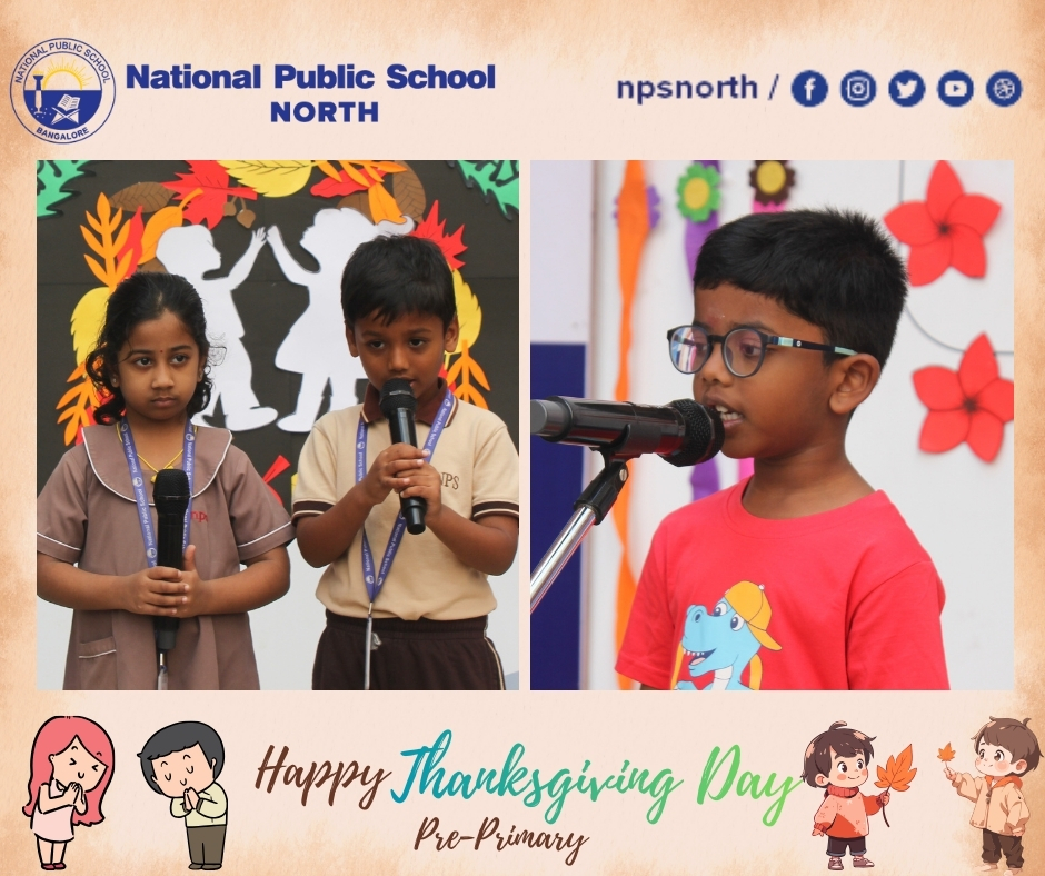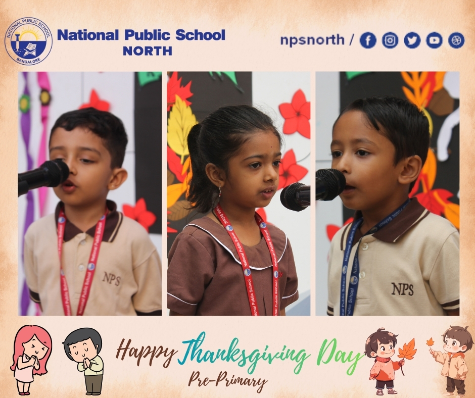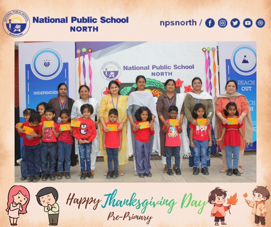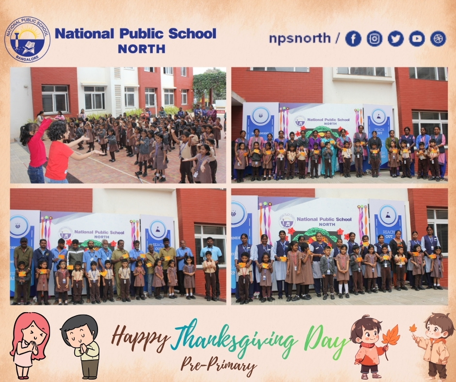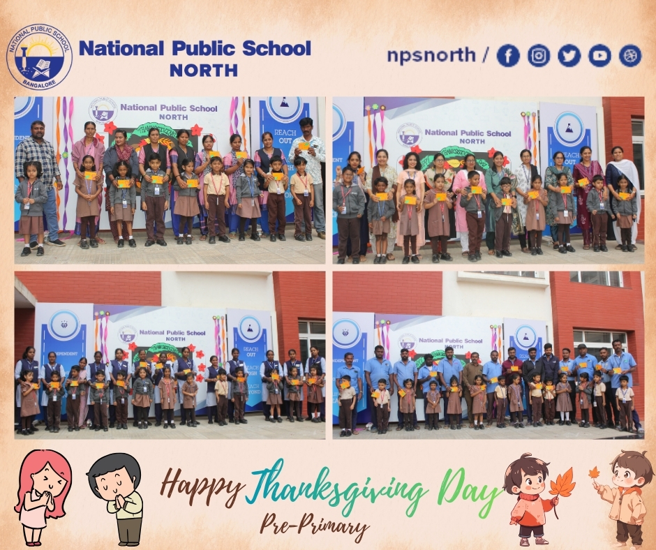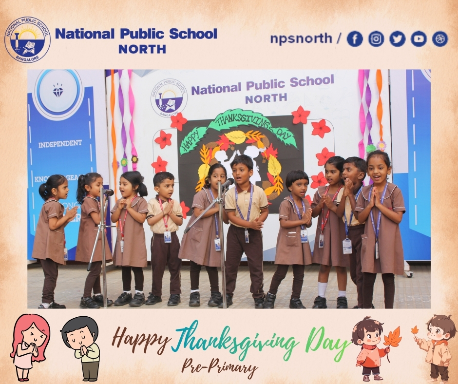 The Pre-Primary students of NPS NORTH celebrated Thanksgiving Day with great joy and gratitude on Friday, 21st November 2025. The celebration began with the Thought for the Day: